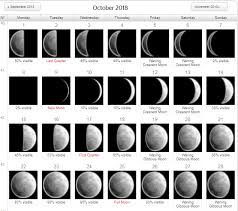 Watch the moon calendar in october 2019 per day for example the full moon.
